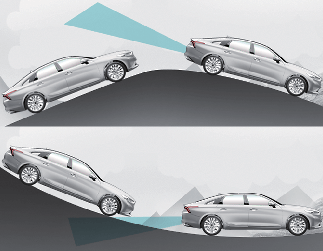 Вспомогательная система предотвращения столкновения в слепой зоне может работать некорректно при движении по склонам. Система предотвращения столкновения в слепой зоне может не обнаружить автомобиль на соседней полосе или неправильно обнаружить землю или здание.