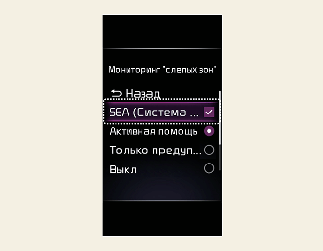 Если пункт «Safe Exit Warning» (Предупреждения системы контроля безопасного выхода) не выбран, система помощи не работает. Водитель всегда должен следить за обстановкой и соблюдать правила безопасного управления автомобилем.