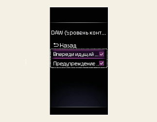 Если выбран пункт «Inattentive Driving Warning» (Предупреждение о невнимательном вождении), система будет сообщать водителю информацию о его уровне внимания и порекомендует отдых, когда его внимательность упадет ниже определенного уровня.