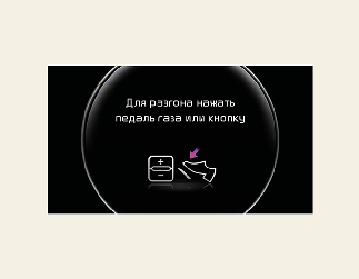 сообщение. Чтобы начать движение, нажмите педаль акселератора или переключатель «+», «-» или (