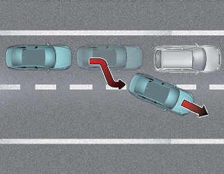 Если впереди идущий автомобиль перестраивается, система интеллектуального круиз-контроля может не определить перестроение мгновенно.