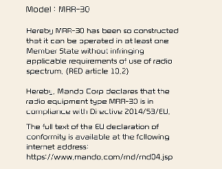 Радиочастотные компоненты (задний/передний угловой радар) соответствуют перечисленным ниже требованиям: (при наличии)