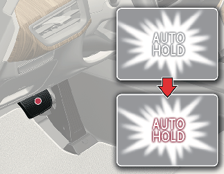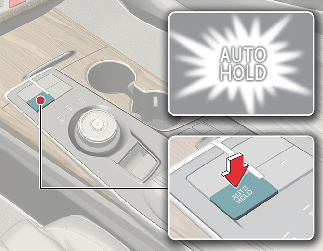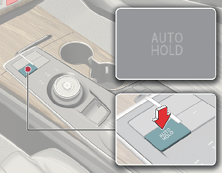 Для отключения функции автоматического удержания, когда автомобиль стоит на месте, нажмите переключатель AUTO HOLD и одновременно выжмите педаль тормоза.