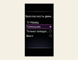 При этом, даже если выбрано значение «Off» (Выкл.), звуковой сигнал предупреждения об отсутствии рук на рулевом колесе не отключится. Функция вибрации рулевого колеса (если предусмотрено) также останется включенной, если выбрано значение «Off» (Выкл.).