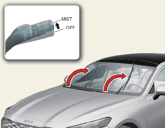 После выключения двигателя в течение 20 секунд переведите переключатель стеклоочистителя в положение однократного движения (MIST) и удерживайте кнопку более 2 секунд, пока щетки стеклоочистителя не переместятся в полностью поднятое положении.