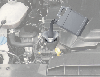 Используйте воронку, чтобы не пролить масло на компоненты двигателя.