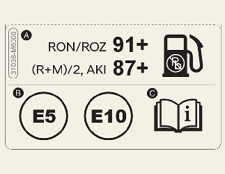 Этикетка с информацией о потребляемом топливе размещена на крышке заливной горловины бака.