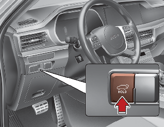 테일게이트가 닫힌 상태에서 파워 테일게이트 작동 버튼을 길게 누르면 비상 경고등 및 경고음이 작동하며 테일게이트가 열립니다.