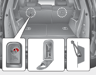 어린이 보조좌석을 고정할 수 있는 상부 부착구(후크 고정용)가 2열 좌석 등받이 뒷편에 위치해 있습니다.