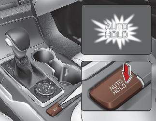 브레이크 페달을 밟은 상태에서 「AUTO HOLD」 버튼을 누르면 「AUTO HOLD」 표시등이 꺼지며 시스템이 해제됩니다.