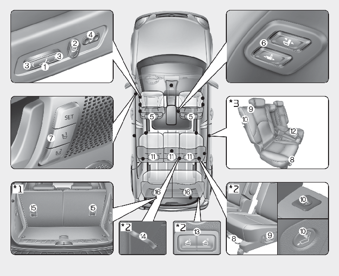 * 1: 6/7 인승, * 2: 6 인승, * 3: 5/7 인승