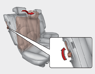 등받이를 접을 때 반드시 등받이나 헤드레스트를 손으로 잡은 상태에서 안전하게 조절하십시오.