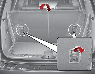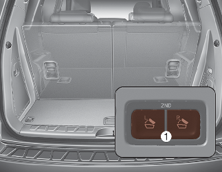 테일게이트내 우측에 위치한 등받이 폴딩스위치(1)를 누르십시오.