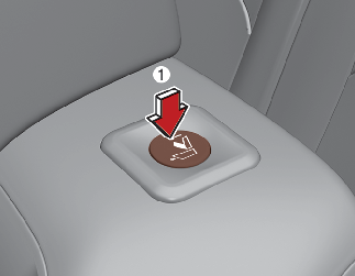 2열 접이용 스위치(좌석 등받이 상단 및 2열좌석 바깥쪽)가 작동하지 않을 경우, 2열 시트하단에 있는 스트랩 (1)을 당기십시오. 접이용 스위치와 동일한 역할을 하며 2열 좌석 등받이가 앞으로 이동하면서 2열 좌석을 전방으로 이동할 수 있습니다.