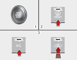 에어컨 선택 버튼을 누른 상태에서 내/외 공기 선택(실내 순환) 버튼을 3초 이내에 5회 이상 누르십시오.