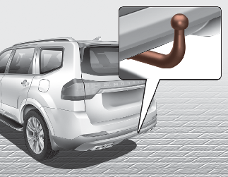 트레일러 히치 장착용 구멍은 차량 뒤쪽 하단부에 있습니다. 트레일러 히치 장착시 견고하게 장착하십시오. 트레일러 히치 장착용 구멍 이외에 별도로 구멍을 뚫거나 리어 범퍼 부품에 장착하지 마십시오.