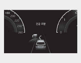경고문과 경고음을 통해 긴급 조향을 알립니다. 조향 제어가 작동하여 측방 차량과의 충돌을 피할 수 있도록 도와줍니다.