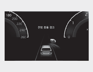 경고문과 경고음을 통해 전방 충돌 경고를 알립니다.