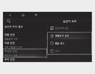 경고 시점을 변경하면 다른 운전자 보조 기능의 경고 시점도 같이 변경될 수 있습니다. 고려하여 변경하십시오.