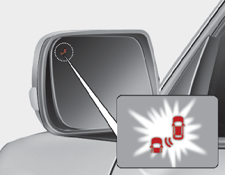 사이드 미러(아웃사이드 미러) 경고등이 깜빡이고 경고문과 경고음을 통해 충돌 경고를 알립니다.