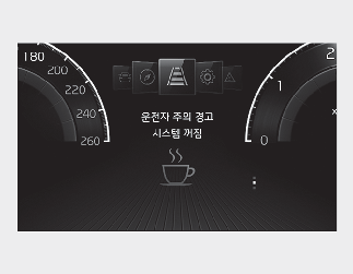 운전자 주의 경고가 휴식을 권유하지 않더라도 피곤함을 느낀다면 안전한 장소에 주정차한 후 휴식을 취하십시오.