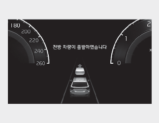 정차 중에 앞 차량이 출발하면 알림 문구가 표시되고 알림음이 울립니다.