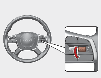 스마트 크루즈 컨트롤이 일시 해제 된 후 다시 켜려면 + 스위치를 올리거나, - 스위치를 내리거나, 스위치