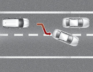 옆 차로의 차량이 끼어드는 상황에 대처할 수 있도록 주의를 기울이십시오.
