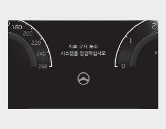 차로 유지 보조에 이상이 있으면 클러스터에 경고문이 일정시간 표시되며 통합 경고등()이 켜집니다. 자사 직영 서비스센터나 서비스 협력사에서 점검을 받으십시오.