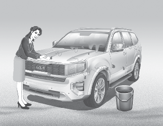 강력 세제나 뜨거운 물 등을 사용하지 마십시오. 그리고 차체가 따뜻할 때 직사광선 아래에서 차를 닦지 마십시오.
