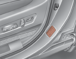 본 차량의 권장 타이어 공기압 정보는 운전석 옆 센터 필러에 부착된 라벨 안에 표기되어 있습니다.