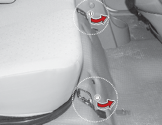 Desabroche los broches (1) en la parte delantera del cojín del asiento.
