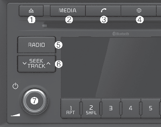 Pulse y mantenga pulsado para encender/apagar el sistema de infoentretenimiento*.