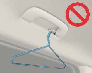 Ne pendez pas de cintres ou d’objets durs à l’exception de vêtements. De plus, ne placez pas d’objets lourds, tranchants ou fragiles dans les poches des vêtements. En cas d’accident ou lorsque le coussin gonflable de type rideau est déployé, il peut causer des dommages au véhicule ou des blessures corporelles.