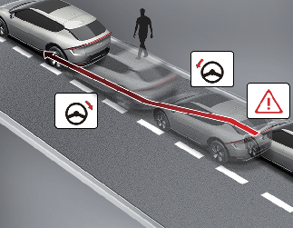 La fonction d’assistance à la direction en cas de manœuvre d’évitement peut aider à éviter une collision avec un véhicule, un piéton ou un cycliste qui vous précède sur la même voie. Lorsqu’un risque de collision est détecté, la fonction Assistance en cas de manœuvres d’évitement peut avertir le conducteur et s’il y a de l’espace pour éviter la collision dans la voie, elle assistera le conducteur dans sa direction.