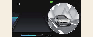 L’écran de la vue de l'angle mort affiche la zone d'angle mort arrière du véhicule dans le groupe lorsque le clignotant est activé pour aider à changer de voie en toute sécurité.