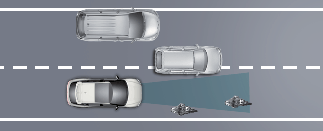Lorsqu’un véhicule se déplace vers votre voie à partir d’une voie adjacente, il ne peut pas être détecté par le capteur tant qu’il n’est pas dans la portée de détection de celui-ci. Le régulateur de vitesse intelligent peut ne pas détecter immédiatement le véhicule lorsque celui-ci change brusquement de voie. Soyez toujours attentif à la route et aux conditions de conduite et conduisez prudemment. Si nécessaire, appuyer sur la pédale de frein pour ralentir et maintenir une distance de sécurité.