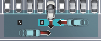 L’Assistance à la prévention de collisions de circulation transversale arrière a été conçue pour détecter les véhicules s’approchant de la zone de l’angle mort pendant que votre véhicule fait marche arrière, et pour avertir le conducteur qu’une collision est imminente au moyen d’un message d’avertissement et d’un avertissement sonore. De plus, le freinage peut être assisté pour aider à prévenir une collision.