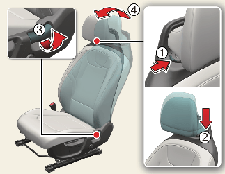 Appuyez sur le bouton de relâche de l’appuie-tête (3) tout en tirant l’appuie-tête vers le haut (4).