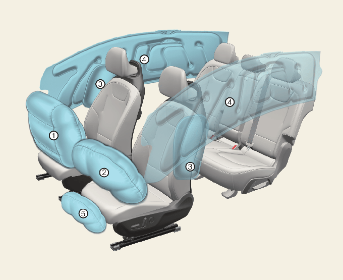 * Les coussins gonflables réels du véhicule peuvent différer de l'illustration.