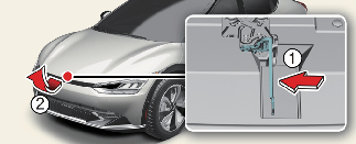 REMARQUEOuvrez le capot après avoir éteint le bouton EV sur une surface plane, placez le sélecteur de vitesses en position P (stationnement) et serrez le frein de stationnement.
