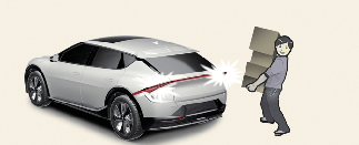 Si vous êtes situé dans la zone de détection (50~100 cm [20~40 pouces] derrière le véhicule) avec la clé intelligente sur vous, les feux de détresse clignoteront et le carillon retentira pour vous alerter que la clé intelligente a été détectée et le hayon s’ouvrira.