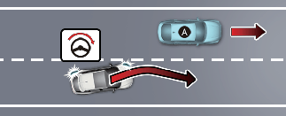 La fonction d’assistance à la direction en cas de manœuvre d’évitement peut aider à éviter une collision avec un véhicule, un piéton ou un cycliste qui vous précède sur la même voie. Lorsqu’un risque de collision est détecté, la fonction Assistance en cas de manœuvres d’évitement peut avertir le conducteur et s’il y a de l’espace pour éviter la collision dans la voie, elle assistera le conducteur dans sa direction.
