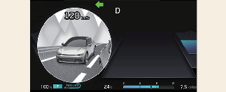 L’écran de la vue de l'angle mort affiche la zone d'angle mort arrière du véhicule dans le groupe lorsque le clignotant est activé pour aider à changer de voie en toute sécurité.