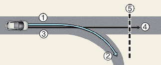 Si le virage est trop grand ou trop petit, le contrôle de conduite intelligente basé sur la navigation peut ne pas fonctionner.
