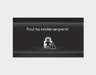 Als het elektronische kinderslotsysteem niet in werking wordt gesteld wanneer de schakelaar van het elektronische kinderslotsysteem wordt ingedrukt, wordt er een melding weergegeven en gaat het alarm af.