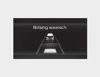 Om de bestuurder te waarschuwen voor een botsing, verschijnt de waarschuwingsmelding 'Collision Warning’ ('Botsingswaarschuwing') op het instrumentenpaneel, klinkt een waarschuwingssignaal en gaat het stuur trillen.