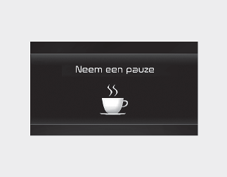 Wanneer de aandacht van de bestuurder afneemt tot onder aandachtsniveau 1, verschijnt de melding 'Consider taking a break' ('Overweeg het om een pauze te nemen') op het instrumentenpaneel en klinkt een waarschuwingssignaal om de bestuurder aan te sporen een pauze te nemen.