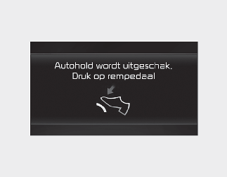 Als u het rempedaal niet hebt ingetrapt tijdens het vrijgeven van de Auto Hold-functie met de schakelaar AUTO HOLD, klinkt er een waarschuwingssignaal en wordt een melding weergegeven.