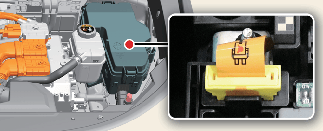 При възникване на авария натиснете надолу жълтия лост на сервизния съединител за блокиране, за да изолирате високото напрежение на батерията. Сервизният съединител за блокиране не е отстранен напълно.